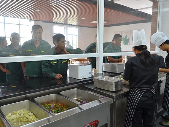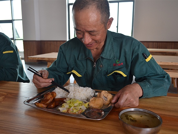 面對(duì)鏡頭,師傅告訴我,現(xiàn)在在新食堂吃飯真的很滿足,每天有這么多的好菜式可以自主挑選,而且菜也變好吃了很多。新食堂的裝修環(huán)境也很美,一早上辛苦工作后,在這里吃飯可以好好放松一下。面對(duì)鏡頭,師傅們一個(gè)個(gè)都開心得贊不絕口。
