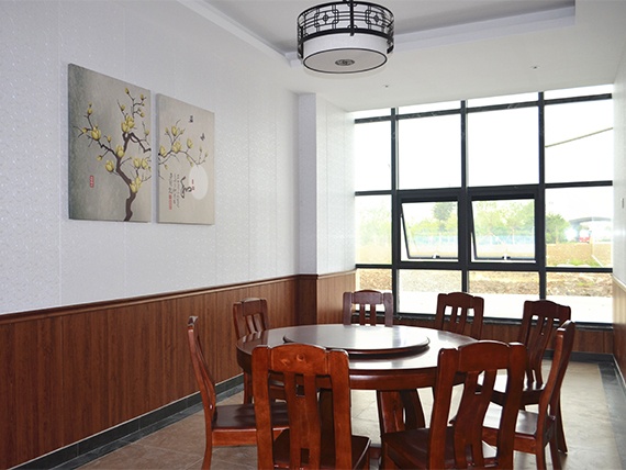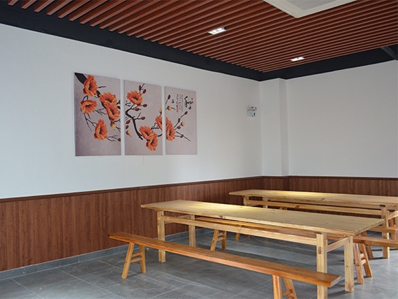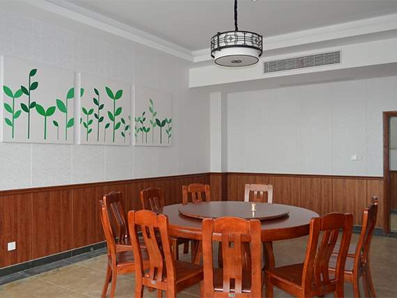 木制的桌椅,舒適的環(huán)境,呼應(yīng)了浙江綠洲環(huán)保能源有限公司“環(huán)?!钡闹黝},處處體現(xiàn)了企業(yè)文化。整個(gè)食堂還有兩個(gè)小包間,供訪客使用。