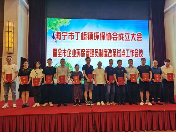 9月10日,海寧市丁橋鎮(zhèn)環(huán)保協(xié)會(huì)成立大會(huì)暨全市企業(yè)環(huán)保管理員制度改革試點(diǎn)工作會(huì)議圓滿召開(kāi),參加本次會(huì)議的有嘉興市生態(tài)環(huán)境局局長(zhǎng)張剛、副局長(zhǎng)馮曉冬,丁橋鎮(zhèn)黨委副書(shū)記、鎮(zhèn)長(zhǎng)陳一飛,副鎮(zhèn)長(zhǎng)沈元杰、陳建新,鎮(zhèn)環(huán)保協(xié)會(huì)會(huì)員單位綠洲環(huán)保負(fù)責(zé)人敖靜波出席會(huì)議并當(dāng)選為海寧市丁橋鎮(zhèn)環(huán)保協(xié)會(huì)第一屆理事會(huì)副會(huì)長(zhǎng)。