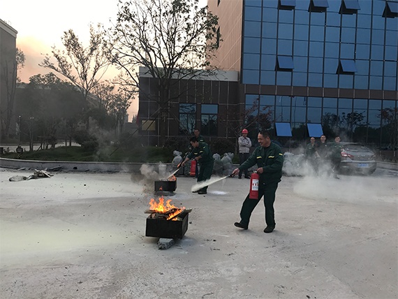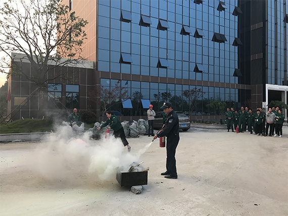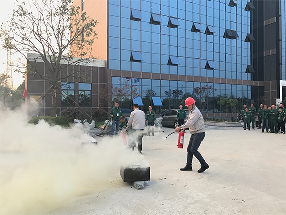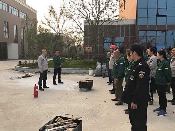 本次消防演習(xí)總指揮和副總指揮分別由公司王總和余總擔(dān)任。演習(xí)一開(kāi)始,余總安排員工代表們分部門排列,王總給大家示范指導(dǎo)如何使用滅火器。全體員工身穿工作服,認(rèn)真學(xué)習(xí)滅火器使用方法和要點(diǎn)。