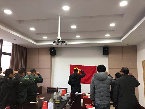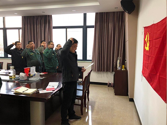 為及時(shí)準(zhǔn)確把握黨的十九大精神,勉勵(lì)廣大黨員不忘初心,牢記使命,不斷提振精神狀態(tài),12月20日,綠洲環(huán)保黨支部書記周順康,為全體黨員干部作了題為《學(xué)習(xí)貫徹落實(shí)黨的十九大精神》的集中黨課,幫助廣大黨員深刻領(lǐng)會(huì)習(xí)近平新時(shí)代中國特色社會(huì)主義思想的歷史地位和豐富內(nèi)涵。會(huì)議上,黨支部志愿隊(duì)隊(duì)長余利鋒同志帶領(lǐng)大家面對(duì)黨旗宣誓: