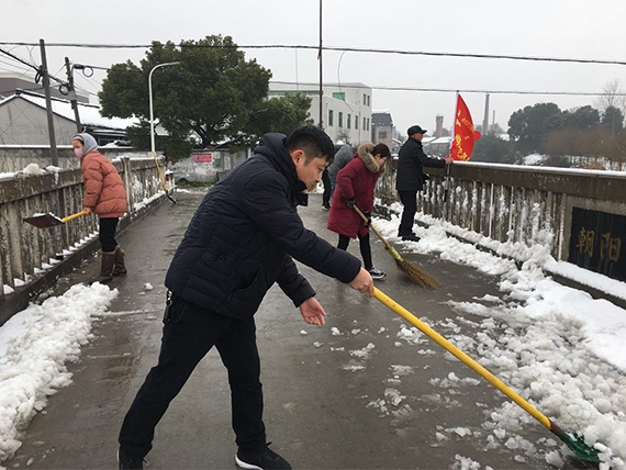 此次綠洲黨員志愿隊(duì)由黨支部周順康書記、志愿隊(duì)隊(duì)長余利鋒同志帶隊(duì),一行8人來到丁橋鎮(zhèn)利群村朝陽橋上清掃積雪。掃除冰雪的熱情高亢,團(tuán)結(jié)互助的背影最美。熱火朝天的勞動(dòng)過后,大家整個(gè)人身體都是暖暖的,也是志愿隊(duì)為市民做出一些微貢獻(xiàn)的滿足感。