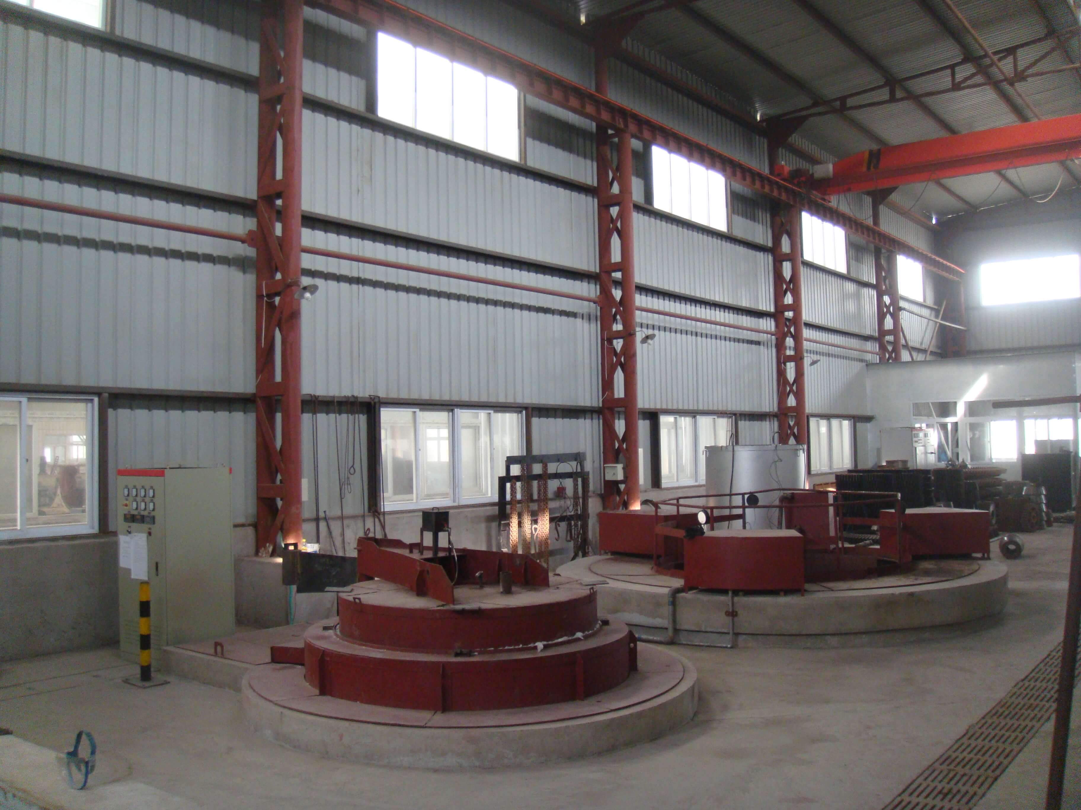 ,10t吊車2 臺。擁有CLCHL3600-400超音頻數(shù)控齒輪噴液淬火機(jī)1臺;RT3-2009-9全纖維爐襯臺車式電阻爐1臺;RJ3-180-11全纖維爐襯井式電阻爐1臺,J4-135-5不銹鋼爐襯回火爐1臺;180立方米淬火液槽3個(gè)...